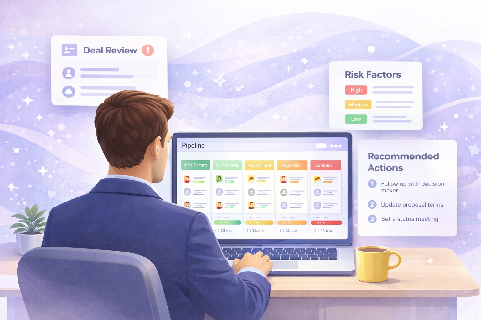 AEs manage 15 to 30 active deals simultaneously, and the signals that actually determine whether a deal closes or stalls are scattered across meeting transcripts, CRM fields, email threads, and Slack conversations. Manually assembling a clear picture of any single deal takes 15 to 20 minutes of context-switching. Doing that across an entire pipeline before a weekly review is simply not realistic, so managers end up relying on the same gut-feel reporting they know is unreliable, and AEs end up surprised by deals that slip, stall, or disappear.
